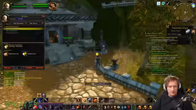 01:27:22Die Kooperation mit Spielern wie Niklas und Papfi steht im Fokus. Nach anfänglichen Schwierigkeiten beim Treffen in Loch Modan wird die Gruppe neu organisiert und gemeinsame Quests wie die Trogg-Quests und die Schädelhauer-Quests bearbeitet. Es werden Loot-Regeln wie das 'brüderliche Teilen' nach Rollen abgestimmt und Strategien für das Farming von Gegenständen, wie das tägliche Einsammeln von Questbelohnungen ab Level 20, diskutiert und angewendet, um den progress des Charakters zu maximieren.