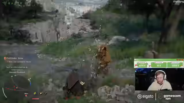 03:12:34Nachdem er einen Bosskampf meistert, wechselt der Streamer die Aktivität. Er probiert das Angeln im Spiel, was ihm anfangs schwerfällt und als zu komplex mit den vielen gleichzeitig benötigten Tasten erscheint. Zwischen den Spielereignissen fließen humorvolle Gespräche über die Gamescom, Vergleiche mit anderen Streamern und Anekdoten aus der Vergangenheit, was eine entspannte Atmosphäre schafft.