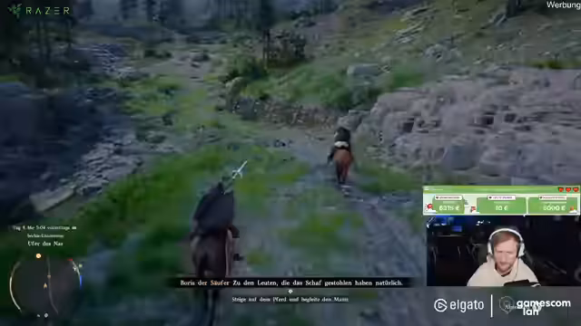 02:29:55Nach einer kurzen Unterbrechung wird die Hauptquest wieder aufgenommen. Der Streamer erkundet das Spiel weiter, wobei er neue Begleiter wie ein kleines Kind namens Blöde Buu vorstellt. Er geht auf ausführliche Spielmechaniken ein, wie das Ausbauen eines provisorischen Lagers, das Ausrüsten des Pferdes und die Möglichkeit, echte NPC-Begleiter zu rekrutieren, die Aufgaben für den Spieler erledigen können.