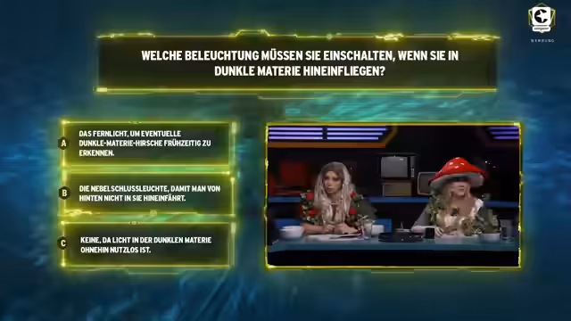 00:34:35Das Pen-and-Paper-Rollenspiel Cyra's Cosmic Quest 2: The Sphere wird mit dem eigens entwickelten System 'Herzwildnis' gespielt. Die Geschichte findet in den Köpfen der Teilnehmer statt, wobei die Spielleitung die Welt, Charaktere und Aktionen beschreibt und Nebenfiguren spielt. Die Regeln werden von der Spielleitung interpretiert, und Würfel entscheiden über den Erfolg von Handlungen. Jeder Wurf beinhaltet einen Herzwürfel (normalerweise ein zwölfseitiger Würfel), dessen Größe sich mit der Erschöpfung des Charakters verringert, sowie einen Bonuswürfel, der von der Situation und den Fähigkeiten des Charakters abhängt. Ein Crowdfunding für das Regelwerk ist unter herzwildnis.de gestartet. Die Hauptattribute und Rollen der Charaktere werden wiederholt: Kaddi ist eine muskulöse Heilerin mit Ranken und Vitalität. Jen ist Grimm mit Ausstrahlung, die Schaden austeilt. Linda ist die Wacht mit Wissen und Technologie. Maxim ist Grimm mit Gewandtheit und Fingerfertigkeit. Leon ist ein Bun mit psionischen Kräften und Ausstrahlung, der Buffs und Debuffs einsetzt. Ein Testwurf auf Balance demonstriert die Würfelmechanik, wobei ein Pasch eine besondere Eingebung und das Maximum der Würfel bedeutet. Konflikte und Kämpfe werden später im Abenteuer behandelt. Zudem wird eine Umfrage mit dem Stichwort 'Kongstar' im Chat angekündigt, bei der Xbox-Controller im Cyra-Design gewonnen werden können.