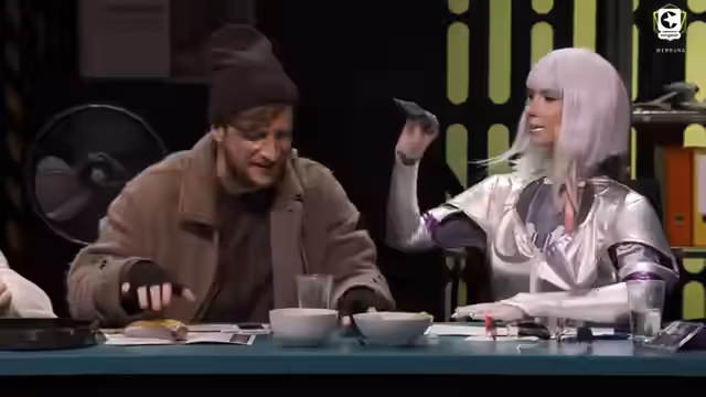 00:13:37Der Live-Stream beginnt mit der Begrüßung zu Cyra's Cosmic Quest 2: The Sphere, einem Pen-and-Paper-Abenteuer, das durch Kongstar ermöglicht wird. Alexander Kahnstedt, professioneller Spielleiter und bekannt durch seine Rollenspiel-Tutorials der Abenteuergilde und als Spielleiter der Dice-Actors, stellt sich vor. Er war bereits im letzten Jahr Spielleiter und wird die Crew auch dieses Mal durch die Galaxis führen. Das Publikum wird darauf hingewiesen, dass alle nötigen Erklärungen zum Spielverlauf und den Regeln im Laufe des Streams gegeben werden, um auch Neulingen den Einstieg zu erleichtern. Die Teilnehmer des Abenteuers sind bereits in ihren Rollen und Kostümen, was für eine immersive Atmosphäre sorgt. Es wird die Vorfreude auf das Abenteuer und die Dynamik der Gruppe thematisiert, insbesondere die Teilnahme von Kathi als Neuling, die letztes Jahr durch Jasmin inspiriert wurde, und Lindas Charakter Uri, der ein Upgrade erhalten hat. Die unterschiedlichen Erfahrungen der Spieler mit Pen & Paper, von Jens anfänglicher Skepsis bis zu Kadis positiver Aufregung, werden beleuchtet, bevor die detaillierte Charaktervorstellung beginnt.