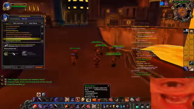 00:21:05Während des Farm-Streams interagiert der Streamer mit anderen Spielern, insbesondere mit einem Gnome namens Nils Gnomhoff. Er bittet Nils um Hilfe bei der Questvorbereitung für die Deadmines und zeigt sich verwirrt über bestimmte Spielmechaniken, wie die Notwendigkeit eines rauen Schleifsteins. Zwischendurch verkauft er Beutegut, prüft sein Inventar auf notwendige Ressourcen wie Silbererz und erkundet das Umfeld der U-Bahn-Station in Ironforge.
