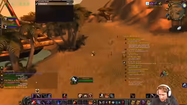 02:15:01Nach Abschluss einiger Quests im Brachland beschließen die Spieler, zur Piratenquest unter Ratchet zu wechseln. Der Streamer nutzt die Zeit für ausführliche Chat-Interaktionen. Es kommt zu humorvollen, teilweise absurden Dialogen, insbesondere als ein englischsprachiger Spieler im Chat provoziert und absichtlich eine verbotene Beleidigung schreibt. Der Streamer diskutiert über die Zensur-Systeme in World of Warcraft und auf Twitch und stellt deren unterschiedliche Funktionsweise fest.
