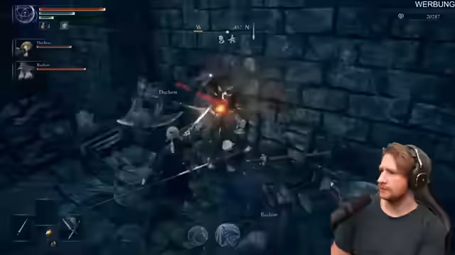 01:51:21Der Streamer erkundet verschiedene Orte in der Spielwelt, wie Burgen und Kirchen, die ihm Vorteile wie schnellere Flaschenaufladung bringen. Er kämpft gegen schwere Bosse wie den 'Yoda' und die 'riesige Frau', die er als 'insane' beschreibt. Er beschäftigt sich mit Waffenupgrades und Steinen, die er finden kann, und die Frage, ob man diese umwandeln kann. Er spricht über die Vorteile von Gegenständen wie dem 'Moonvale', der ihm bei höheren Leveln mehr Schaden ermöglicht.