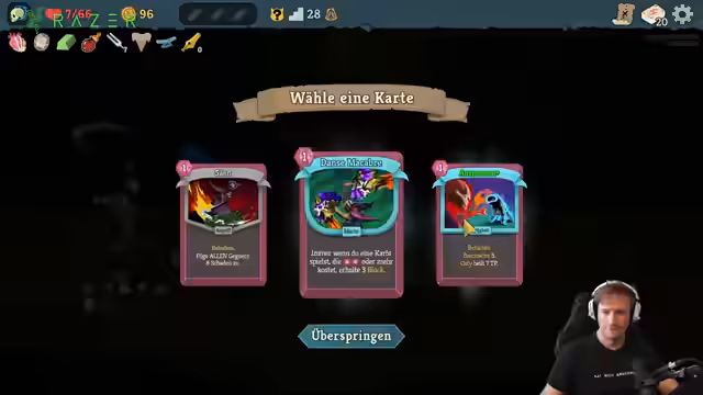 00:00:00Der Stream beginnt mit dem Start eines neuen Spieltages. Der Streamer konzentriert sich auf ein Roguelike-Spiel, bei dem er ein Deck baut und Gegner besiegen muss, die immer stärker werden. Die Anfangsphase des Spiels ist geprägt durch das Erkunden und die Sammlung von Karten. Der Streamer testet verschiedene Strategien und macht sich mit den Mechaniken, wie Seelen und Verderben, vertraut. Sein Ziel ist es, einen guten Aufbau für den Rest des Spiels zu schaffen.