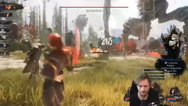 02:53:20Ein Kampf gegen einen Boss mit verschiedenen Elementen wird beschrieben. Es gibt Tests mit verschiedenen Schadensarten wie Feuer, Eis, Erde und Unlicht. Der Streamer ist irritiert, dass physischer Schaden nicht immer funktioniert. Es gibt Versuche, den Boss zu schwächen, aber dies wird als 'übelst gedeutcht' beschrieben. Die Markierung des Bosses wird als sehr effektiv bezeichnet.