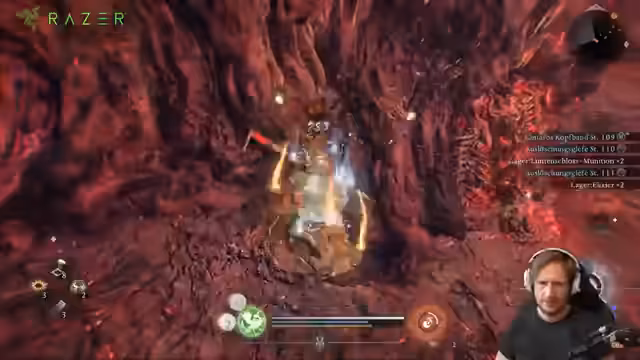 01:39:58Der Streamer kämpft gegen einen finalen Boss, einen Grabgegner, der ihm großen Schaden zufügt. Nach einem harten Kampf gelingt es ihm, den Boss zu besiegen. Anschließend kehrt er zur Schmiede zurück, wo er eine überlegene Waffe findet, die trotz eines niedrigeren Levels mehr Schaden anrichtet. Er schließt das Streams mit einer verletzenden Bemerkung über die Zuschauer.