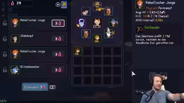 01:45:08Nach dem Training beschäftigt sich der Streamer mit einem Spiel, das ihm nach anfänglicher Enttäuschung doch Freude bereitet. Er erwähnt technische Schwierigkeiten und den Wunsch, bestimmte Charaktere oder Items zu entwickeln. Der Streamer experimentiert mit verschiedenen Builds und Strategien, um einen Boss zu besiegen. Er zeigt Begeisterung für das Spielprinzip, aber auch Frustration über manche Mechaniken und Entscheidungen während des Spiels.