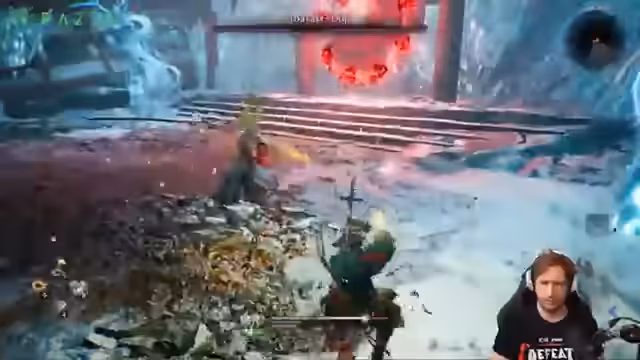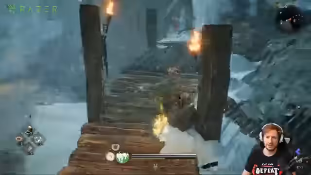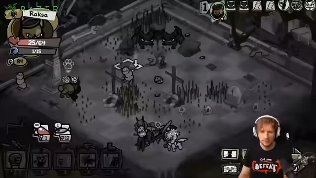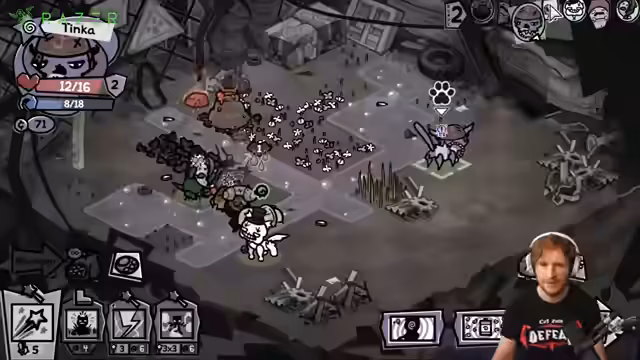 02:39:59Der Streamer kämpft weiter gegen die Katzen-Gegner, die ihn ständig jagen und greifen. Er muss seine Ausdauer sorgfältig verwalten und nutzt das Umfeld, indem er Gegner in Feuer lockt oder sie mit Fesseln am Rand des Bildschirms baut. Er beschreibt die Kämpfe als 'episch', aber auch sehr fies.