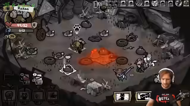 03:28:54Der Streamer greift die Vulkankatze mit einem Feuerlöscher an, um sie vom Vulkan zu holen. Er stellt fest, dass die Katze sehr stark ist und der Tank Heiler braucht. Er baut Einheiten, um die Katze einzukesseln und den Schaden zu minimieren, und nutzt die Mechanik, dass Katzen nicht von vorne getroffen werden können, zu seinem Vorteil.
