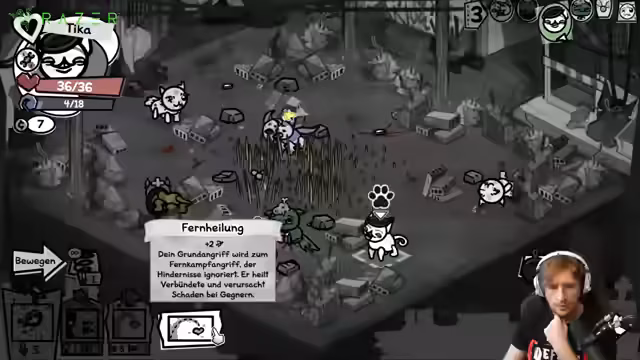 02:35:06Der Streamer beginnt mit der Mission 'Catissimus', einer speziellen Katzen-Mission. Er beschreibt die Gegner als extrem wild und verwirrend, insbesondere weil er die Ausrichtung im Kampf verliert und ständig von mehreren Grab-Attacken gleichzeitig getroffen wird, was ihn sehr frustriert.