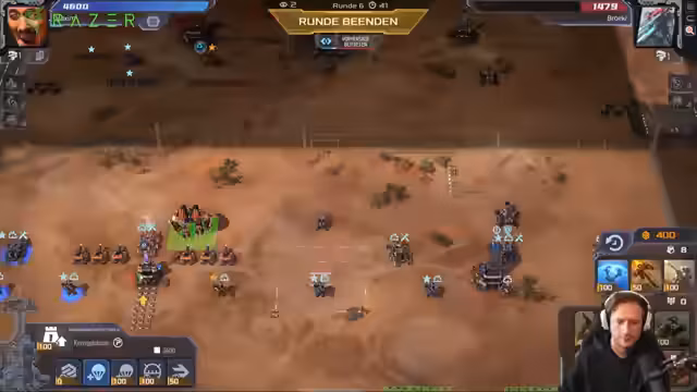 00:04:07Die ersten Runden des Spiels in Mechabellum werden gespielt. Der Streamer setzt auf eine Komposition mit Crawlern und Flammenwerfern, die er als stark erachtet. Es kommt zu mehreren Tauschrunden und strategischen Entscheidungen, wie dem Kauf von Upgrades für Reichweite und Anti-Luft-Einheiten. Der Gegner spielt ebenfalls aggressiv mit Einheiten wie Panzern und Flammenwerfern, was zu hitzigen und wechselseitig profitablen Kämpfen führt. Das Spiel ist geprägt von ständigen Angriffen und Gegenangriffen.