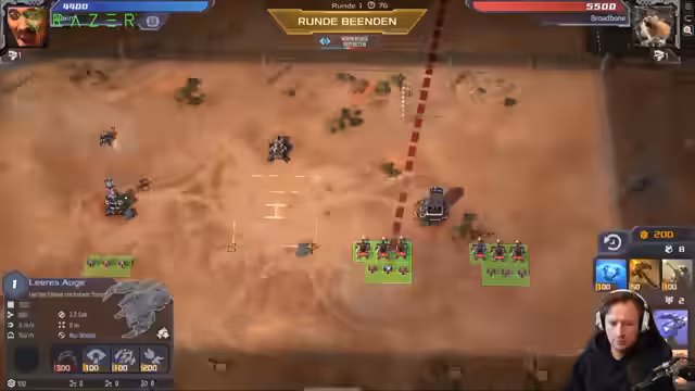 02:42:37Der Stream beginnt mit der Analyse eines Spiels, bei dem Maxim mit einem Säbelzahntiger konfrontiert ist, den er für ein „dummes War“ hält. Er beschreibt die Schwierigkeiten, gegen diese Einheit zu gewinnen, da diese sich mehr heilt als angerichtet wird und sich durch Schusswechsel mit einem Sniper nicht besiegen lässt. Er stellt fest, dass das Match-up ihn „unnormal überfordert“ und die Kombination aus Reichweite und Panzerung (Tankiness) für ihn „ganz schrecklich“ ist.