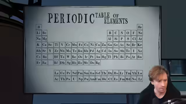 03:44:55Ein komplexes Rätsel, das das Periodensystem der Elemente erfordert, wird zum zentralen Punkt des Streams. Dem Streamer werden mehrere chemische Elemente vorgelegt, deren Symbole er in eine korrekte Reihenfolge bringen muss. Er weist die Community an, nicht im Internet zu recherchieren und betont die Regel 'Never trust'. Nach mehreren Versuchen und Diskussionen im Chat wird die korrekte Reihenfolge gefunden, was zu einer Fortsetzung der Geschichte führt.