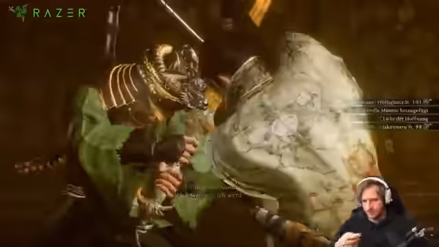 00:17:30Nach mehreren gescheiterten Versuchen, den Boss auf konventionellem Weg zu besiegen, entscheidet sich der Streamer für eine alternative, 'cheesige' Taktik. Da die ständige Parry-Versuche durch den Debuff unmöglich scheinen, plant er, den Boss durch kontinuierliche Angriffe zu überwältigen, sobald die Elektroeffekte vorbei sind. Diese Taktik ist riskant, aber eine Notlösung, um die unendliche Ausdauer des NPC-Bosses zu umgehen und seine Attacken auszumanövrieren.