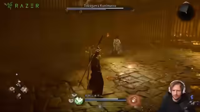 00:55:39Nach dem Bosskampf geht der Streamer weiter in der Spielwelt und erkundet das aktuelle Level. Er kritisiert das Aussehen der Level, die für ihn im Vergleich zu Nioh 2 weniger ansprechend sind, und findet, dass das viele Partikel und Glitzereffekte die Übersichtlichkeit stören. Dennoch findet er an dem Progressions-Satisfying, wenn man vom schwachen Charakter am Anfang zum mächtigen Krieger wächst.