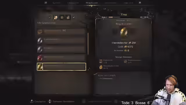 06:16:04Die Interaktion mit NPCs und das Handwerkssystem werden entscheidend für den Fortschritt. Der Streamer sucht nach einer Köchin, um Alchemie-Rezepte zu erhalten. Durch den Verkauf von überflüssigen Gegenständen und Handwerksmaterialien wird Gold verdient. Das Herstellen von Ringen, die spezielle Boni wie erhöhte Blutungs- oder Giftchance bieten, wird als strategischer Vorteil identifiziert und als zentral für den zukünftigen Build angesehen. Ein neuer Fertigkeitsbaum wird erkundet.