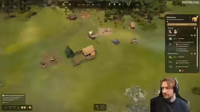 03:08:50Die Anfangsphase des Streams ist geprägt von der Einrichtung des Dorfes. Zunächst werden ein Sägewerk zur Bretterproduktion und ein weiteres Gebäude für Holzfäller geplant. Der Fokus liegt auf der effizienten Verteilung der Arbeitskräfte und dem Sammeln von Ressourcen wie Holz und Stein. Dabei wird der Bau von Wohnhäusern vorangetrieben, um neue Bewohner anzuziehen und die Dorflagerhäuser mit den notwendigen Materialien zu befüllen. Die ersten Gebäude werden testweise in der Nähe des vorhandenen Waldes platziert.