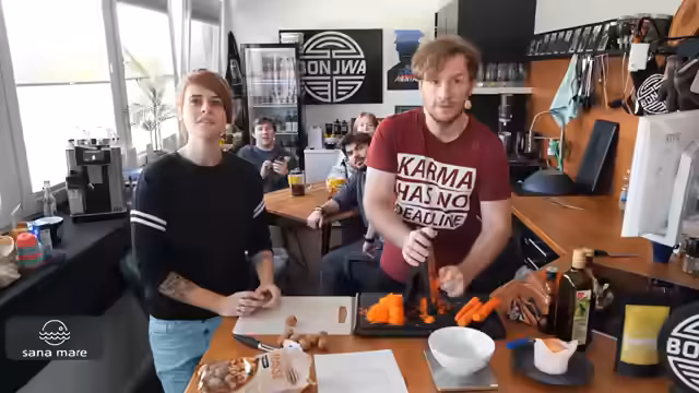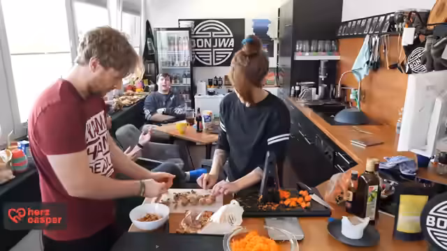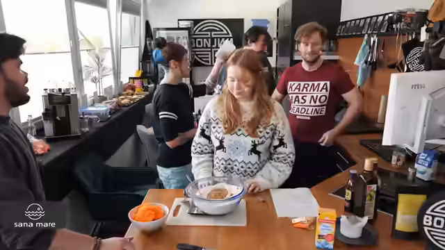03:13:38Nach dem League of Legends-Spiel wechselten die Streamer in die Küche, um mit den Vorbereitungen für das Kochen zu beginnen. Maxim, der bereits früh am Morgen gestartet war, begrüßte die anderen Teammitglieder, darunter Laura, Robin und Therese. Es wurde über die bevorstehenden Gerichte gesprochen, wobei Frischkäse-Eising und Muffins erwähnt wurden. Die Streamer zeigten humorvoll verschiedene Muffinförmchen und diskutierten über deren Eignung. Die Küche war gut vorbereitet, auch mit veganen Optionen, um den unterschiedlichen Ernährungsbedürfnissen gerecht zu werden. Die Atmosphäre war locker und gesellig, während die Teammitglieder sich austauschten und die Aufgaben für das Kochen verteilten. Es gab auch eine kurze Diskussion über die Nutzung einer Kaffeemaschine, die in der Vergangenheit zu Problemen geführt hatte, was die entspannte und humorvolle Stimmung unterstrich.
