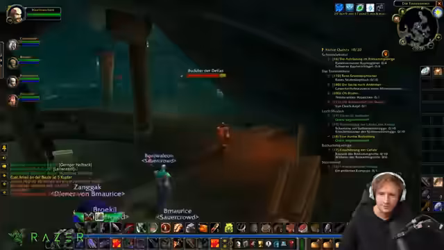 01:32:40Der Streamer bespricht die Oger-Quest in Loch Modan, die er als sehr schwierig und eklig für einen Solo-Tank empfindet. Er erörtert, ob man die Quest in einer Fünfergruppe bewältigen sollte, da die Ogern besonders gefährlich sind und viel Aggro generieren. Da er selbst unsicher im Tanken ist, möchte er in der Gilde nach zwei weiteren Spielern fragen, die die Quest noch offen haben. Es besteht auch die Idee, einen weiteren Streamer, Maurice, für die Gruppenquest zu gewinnen. Dennoch bleibt die Unsicherheit, ob sich fünf Spieler finden, die sich trauen, diese Herausforderung anzugehen.