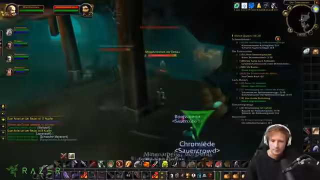 00:00:03Der Stream startet mit lockeren Begrüßungen und einer Einordnung des aktuellen Spielstatus. Der Streamer befindet sich im Loch, hat aber festgestellt, dass die Quests grau geworden sind und somit keine XP mehr bringen. Sein Ziel ist es, heute auf Level 10 oder 11 zu kommen, wobei der Fokus auf den Schmutzigen-Pfoten-Quests liegt. Ein entscheidendes Problem für den geplanten Deadmines-Run ist der Ausfall eines potenziellen Healers, was den Erfolg des Unternehmens gefährdet und beim Streamer für Frustration sorgt.