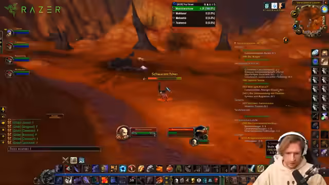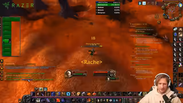 00:12:16Der Streamer kämpft mit den Anforderungen seiner Quests, da er zum Beispiel vier Megan benötigt und die Quest ihn trollt. Nachdem er einen Boss besiegt hat, bemerkt er erst spät, dass dieser ihm nur Seelensplitter und keine EP gegeben hat. Auf dem Weg zur nächsten Quest stirbt er durch einen zufälligen Tornado in Westfall, ein Tod, der an einen früheren durch eine Prinzessin erinnert und dem Streamer großen Frust bereitet.