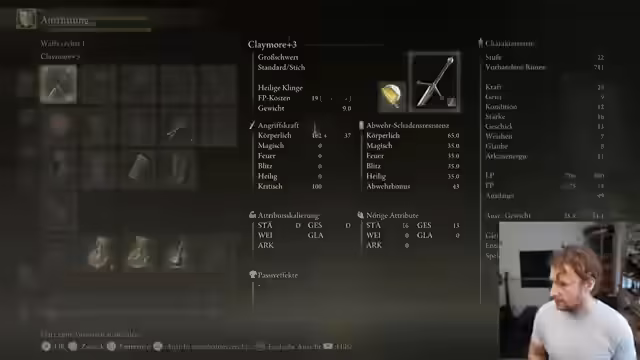 04:06:11Im weiteren Verlauf des Streams tauscht sich der Streamer über verschiedene Gameplay-Strategien aus. Er bevorzugt Builds mit viel Lebenspunkten anstelle von reinem Schaden, was er als effektiver für den späteren Spielverlauf ansieht. Des Weiteren erkundet er verschiedene Waffen wie die Pike, bewundert die Guard-Counter-Mechanik und entdeckt, dass einige Ausrüstungsgegenstände wie eine bestimmte Rüstung nach dem Verlust von Lebenspunkten automatisch heilen.
