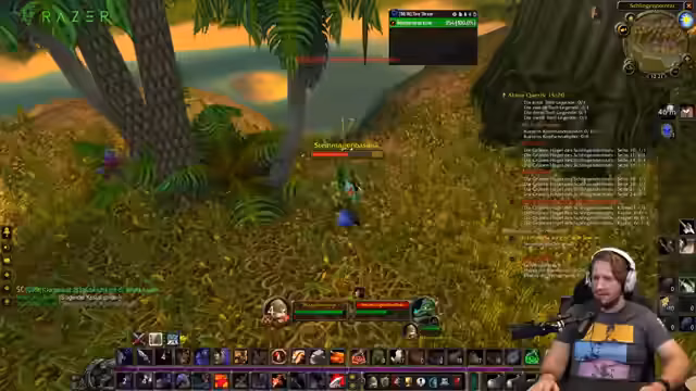 02:51:48Nachdem er eine Quest erfolgreich abgeschlossen hat, steht er vor der Herausforderung, sein Questlog zu verwalten. Er hat eine große Anzahl von Quests angenommen und diskutiert im Chat, ob er alle sofort abgeben oder lieber strategisch vorgehen soll. Parallel dazu denkt er über seine Route nach Booty Bay nach und überlegt, ob er andere Gebiete erkunden sollte, wie Gamba, oder ob er seine Ressourcen stattdessen nutzt, um seine Ausrüstung zu verbessern.