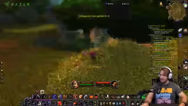 02:59:03Der Streamer spricht über seine Erfahrungen mit Events und Quests, wobei erwähnt wird, dass einige Teilnehmer an Events haften bleiben. Er ist auf der Suche nach spezifischen Quest-Items im Schlingdorntal und beschäftigt sich mit dem Sammeln von Büchern von bestimmten Gegnertypen. Dabei werden auch technische Aspekte wie ein langsames Spieltempo und der Verlust von XP thematisiert. Besonders negativ wird ein gegnerischer Fähigkeit namens 'Entwaffnen' bewertet, die als 'Ultra-Terror' und 'stupid' beschrieben wird, da sie den Spielspaß erheblich trübt.