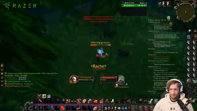 00:00:00Der Stream beginnt mit dem traditionellen Schmiedeabend. Maxim erkundigt sich nach Käse-Empfehlungen und berichtet über den Tod von Sekt, einem Mitstreiter, während er den Weg durch eine unübersichtliche Map nimmt. Bei der Bearbeitung von Makros für den Talent 'Elune' treten wiederholt Probleme auf, da das Makro nicht zuverlässig funktioniert. Maxim stellt fest, dass Elune das Stehen erfordert und eine millisekundenlange Verzögerung zu Fehlern führen kann, was ihn frustriert.