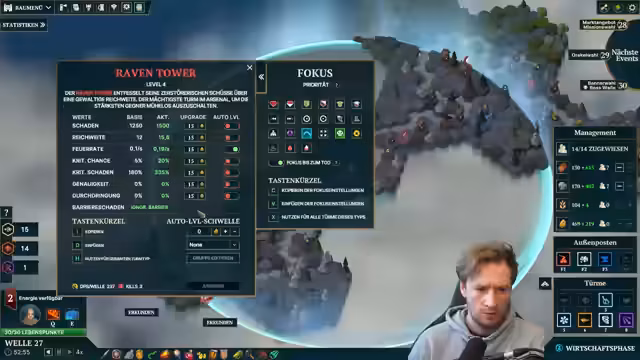 00:13:22Die Schwierigkeit, mit klassischen Türmen zu gewinnen, wird betont, da die Gegner sehr schnell sind. Es wird ein Barriere-Upgrade in Betracht gezogen, das die Barrierewirkung massiv erhöht. Der Streamer plant, Runenschmieden zu bauen und Arbeiter zu priorisieren, um die Standardproduktion zu steigern. Es wird überlegt, ob ein zusätzlicher Turm den entscheidenden Unterschied machen kann. Der Streamer experimentiert mit Magma-Feldern in der Hoffnung, dass diese effektiv sind. Arbeiter werden weiterhin priorisiert, um die Produktion zu steigern. Die Entscheidung, die Bierbrauerei zu bauen, wird getroffen, um die Produktion weiter zu erhöhen. Der Streamer betont, dass alles die ganze Zeit brennen muss, um erfolgreich zu sein. Es wird überlegt, ob auf Feuerpfeile gesetzt werden soll, und die Bedeutung der Feuerstacks wird hervorgehoben. Die Kosten für Gebäude explodieren schnell, was die Planung erschwert. Der Streamer nimmt Feuerrate, weil die Türme schon alles vollkacken sollen, dann mehr Gold pro Welle ist immer gut.