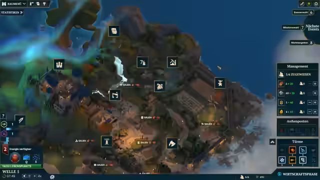 Wirtschaftsplanung, Turmstrategie und Gameplay-Entscheidungen