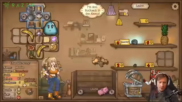 04:40:15Ein zentrales Thema wird das Management von Ausdauer und Heilung. Der Streamer erkundet Builds, die bei niedriger Ausdauer Amor erhalten, und experimentiert mit Gegenständen wie der Trompete und dem Toast, um die Ausdauer künstlich zu regenerieren. Die Herausforderung besteht darin, einen Ausgleich zwischen Schaden, Heilung und Rüstung zu finden, während gleichzeitig Platz für notwendige Gegenstände wie Knoblauch oder Bananen geschaffen werden muss.