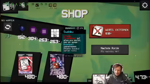 00:15:14Nach mehreren erfolgreichen Runden nähert sich der Streamer dem Boss-Kampf. Die Herausforderung besteht darin, die passenden Würfel zu finden und deren Kombination zu perfektionieren, um den Boss zu besiegen. Er muss sein Geld effizient einsetzen, um starke Würfel wie den 'Glaswürfel' oder den 'Eisenwürfel' zu kaufen. Nach intensivem Taktieren und Werfen gelingt es ihm, den Boss zu bezwingen und eine hohe Punktzahl zu erzielen.