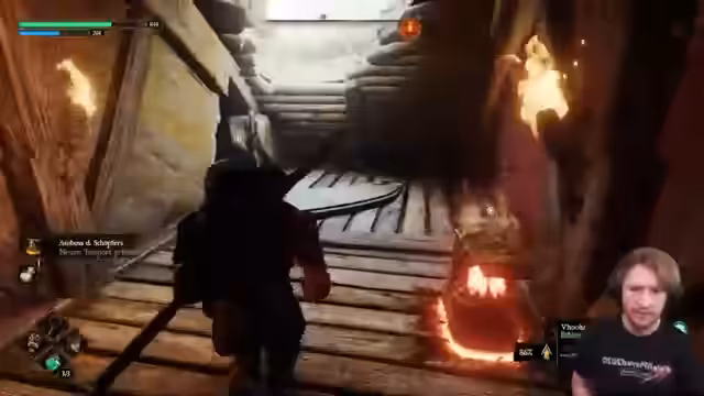 00:12:52Nach mehreren gescheiterten Versuchen und einer Pause baut der Streamer seine Mentalität auf und versucht es erneut. Er erkundet eine Wintergarten-artige Gegend und findet eine neue Brücke, die ihm Hoffnung auf einen Ausgang gibt. Er kehrt an einen Save-Punkt zurück, wo er eine Kiste mit neuen fliegenden Waffen findet. Ein hoh gelevelter Speer geht verloren, doch er erhält dafür eine große Menge Reparaturmaterial zurück. Er plant, eine neue Waffe herzustellen, die besser zu seiner Spielweise passt.