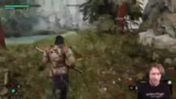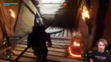 00:02:55Der Versuch in 'Blades of Fire' gestaltet sich äußerst fordernd. Der Streamer kämpft sich durch ein stark befestigtes Areal, muss Schlüssel finden und stößt auf unendlich viele Gegner, die ihn unter Druck setzen. Er ist mental gefordert und beschreibt das Gebiet als das schwerste Level in der Gaming-Geschichte, das ihn psychisch belastet, da er ständig den Ausgang sucht und immer wieder denselben Bereich durchlaufen muss. Das Kind, das er beschützen muss, wird dabei ständig von den Gegnern bedroht.