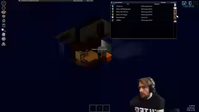 04:30:15Der Streamer konzentriert sich auf das Lernen von Skills in Project Zomboid. Er findet den Multiplikator im System wichtig, da er den Lernerfolg beschleunigt, und nutzt die Zeit, um zu lesen. Neben der Ausbildung wird die Basis gelootet, insbesondere die Abstellkammer, auf der Suche nach nützlichen Materialien wie Klebeband. Dabei werden Gegenstände wie ein Speer und ein alter Fernseher gefunden und für mögliche Kombinationen oder Umbauten bereitgestellt.