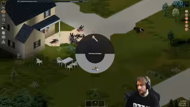05:25:04Die weitere Erkundung konzentriert sich auf das Anschaffen eines Autos. Nachdem ein Fahrzeug gefunden wird, kommt es zu technischen Problemen: der Motor wird durch Kurzschluss zerstört. Das Gefährt kann nur noch mit totem Motor bewegt werden, was viel Lärm verursacht und Zombies anlockt. Nach mehreren gescheiterten Versuchen und einem Sturz, bei dem der Charakter endgültig stirbt, gibt der Streamer auf und kündigt an, den Stream an diesem Punkt zu beenden.