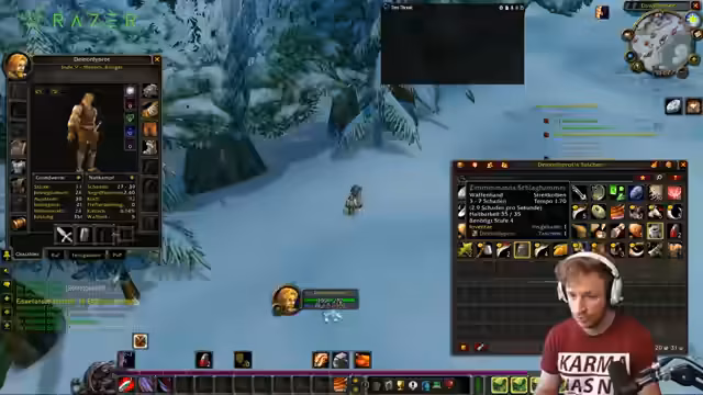 03:25:07Zu Beginn des Streams beschäftigt sich der Streamer mit seinem Charakteraussehen in World of Warcraft: The Burning Crusade, wobei er einen Bug feststellt, der Änderungen des Charaktergesichts verhindert. Nach mehreren Todesfällen in einem Hardcore-Szenario, die er humorvoll als Stupidness, Idiotisy und Insane Dummheit bezeichnet, diskutiert er über die Spielweise. Er überlegt, ob er den Charakter bei jedem Tod neu erstellen soll oder seine Spielweise an das Niveau eines anderen Spielers anpassen möchte. Ein humorvoller Vorschlag, sich bei Blizzard einzuschleusen, um einen zusätzlichen Hardcore-Server zu fordern, wird als Alternative ins Spiel gebracht.