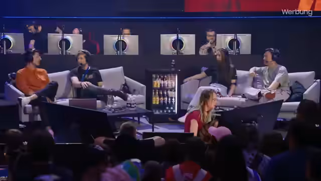 04:55:29Der Stream beginnt mit der Organisation eines interaktiven Mario Kart-Wettkampfe auf der Gamescom-Bühne. Der Moderator ruft Zuschauer auf, sich für die Teilnahme zu bewerben, und verspricht, dass die Gewinner die Möglichkeit haben, in Teams mit Moderatoren wie Maxim oder Jasmin zu spielen. Nach dem Aufruf zur Anmeldung werden die ersten vier Kandidaten ausgewählt, um ein erstes Rennen zu bestreiten, um die Teamzugehörigkeit zu klären.