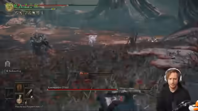 04:24:04Der Streamer kämpft in Elden Ring mit verschiedenen Bossen, insbesondere mit einer für ihn unangenehmen Stelle. Er erwähnt, dass WoW-Server down sind, und schlägt eine 'WoW-Entzug-Challenge' vor, die als brutales Event dargestellt wird. Dabei reflektiert er über die Mechaniken von Elden Ring, wie Stance-Breaks und die Frustration über Bosses, die nicht staggerbar sind, und diskutiert strategische Ansätze für schwierige Gegner.