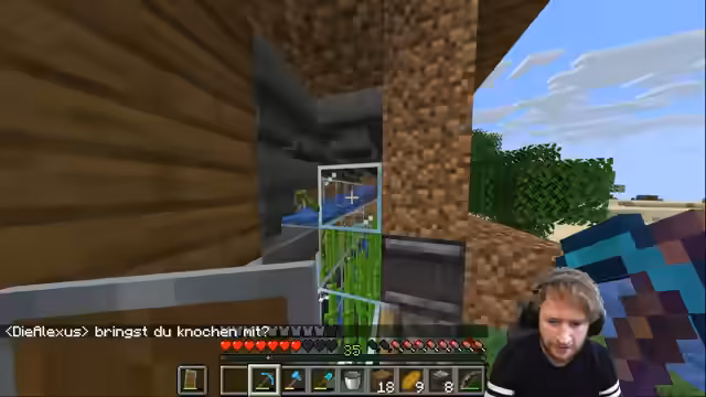 01:50:12Der Handel mit dem unsichtbaren Händler wird fortgesetzt. Die Optionen sind begrenzt, der_streamer_ erwägt, Schweine für Seile zu töten, was aber als nicht besonders wertvoll erachtet wird. Eine Rüstung und Netherite werden erbeutet, doch der_streamer_ steht vor dem Rätsel, wie man Fäden nutzt. Die Ideen für eine automatisierte Farm reifen, ein Hopper scheint unverzichtbar zu sein, auch wenn der_streamer_ seine Redstone-Kenntnisse als nicht vorhanden bezeichnet. Die Erstellung einer Wässerfarm wird diskutiert, bei der die Physik des Wassers im Spiel eine zentrale Rolle spielt.