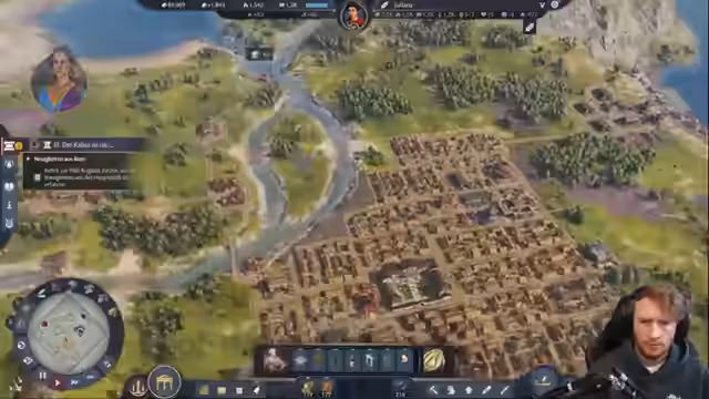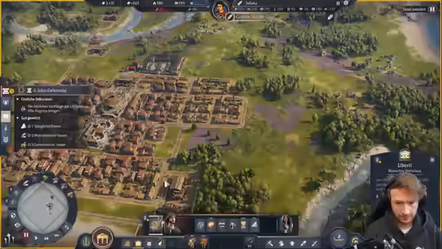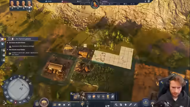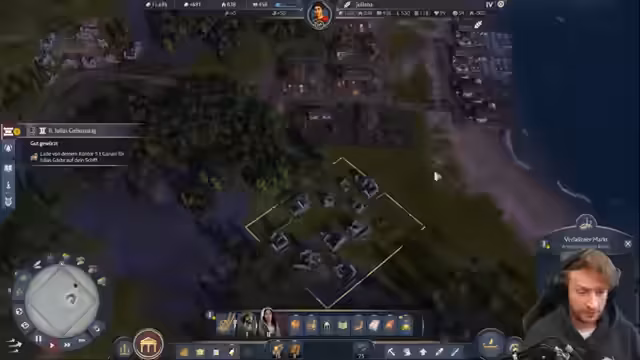 00:34:20Nach einer weiteren verlorenen Runde in 'Backpack Battles' und der Erkenntnis, dass er eine andere Waffe benötigt, kündigt der Streamer den Wechsel zu 'Anno' an, da das Spiel im Hintergrund heruntergeladen wurde. Er freut sich auf eine entspannende Session und erwähnt das bevorstehende DLC zu 'Planet Crafter'. Der Einstieg in 'Anno' beginnt mit der Anmeldung bei Ubisoft Connect, die überraschend reibungslos verläuft. Die grafische Gestaltung des Spiels wird gelobt, und der Streamer startet eine neue Kampagne. Die Einführung in die Geschichte und die Charaktere, insbesondere 'Markus Nopratius' und die Kaiserin Julia, wird mit humorvollen Kommentaren begleitet. Die ersten Aufgaben im Spiel, wie der Bau von Holzfällerhütten und Sägewerken, stellen ihn vor Herausforderungen, insbesondere bei der Platzierung der Gebäude und dem Verständnis der Spielmechaniken. Die Notwendigkeit, Straßen zu bauen und die Versorgung der Bevölkerung mit Nahrung sicherzustellen, wird schnell ersichtlich.