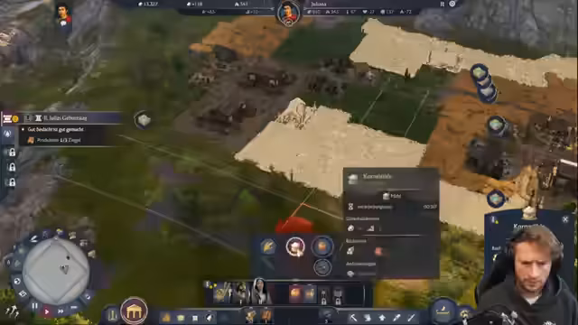 01:08:12Nachdem die erste Mission in 'Anno' erfolgreich abgeschlossen wurde, erhält der Streamer Lob von den Ingame-Charakteren, was er mit Humor kommentiert. Die Notwendigkeit, die Stadt weiter auszubauen und die Bedürfnisse der Bevölkerung zu erfüllen, bleibt bestehen. Er muss sich um die Produktion von Sardinen und die Bereitstellung von Ressourcen für Feste kümmern. Die Einführung von 'Forschung' und 'Wissen' durch Spinnereien eröffnet neue Möglichkeiten zur Verbesserung der Stadt. Der Bau eines Heiligtums und die Auswahl einer Schutzgottheit, die die Produktion von Nahrung erhöht, sind wichtige Schritte zur Steigerung der Zufriedenheit. Die Bedrohung durch Brände und die Notwendigkeit, Feuerwehrstationen zu bauen, werden deutlich. Der Streamer experimentiert mit der Platzierung von Gebäuden und der Nutzung von 'Pause'-Funktionen, um seine Strategie zu optimieren. Die Herausforderung, genügend Arbeitskräfte und Ressourcen zu haben, um alle Bedürfnisse zu erfüllen, führt zu weiteren Überlegungen und strategischen Anpassungen.