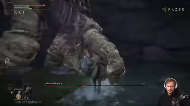 01:40:04Der Kampf gegen einen Drachen gestaltet sich schwierig, da der Streamer die geringe Reichweite seiner Waffen kritisiert und viele Schläge verfehlt. Er äußert Frustration über die kleine Hitbox des Gegners und die scheinbare Unfairness, da er nicht nah genug herankommen kann, um effektive Schläge zu landen. Besonders bei Gargoyles und Bossen wie dem Crucible Knight bemängelt er die fehlende Möglichkeit, die Haltung der Gegner durch seine Angriffe zu brechen.