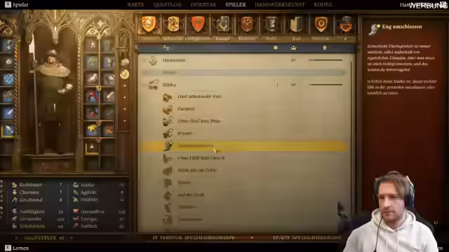 05:14:40Der Streamer erkundet die Skill-Systeme des Spiels und trainiert verschiedene Eigenschaften wie Stärke und Ausdauer. Die Herausforderungen im Leveling werden diskutiert, besonders im Hinblick auf die benötigten Mindeststufen für bestimmte Fertigkeiten. Spielerische Erfolge wie das Erreichen von Voll-HP und das Verständnis der Spielmechanik werden als positive Entwicklung gewürdigt, auch wenn Frustration über bestimmte Spielzüge besteht.