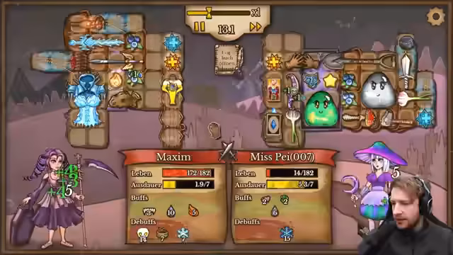 Zu Beginn wurde ein Spiel mit einer Pyromancer-Klasse gestartet, wobei das Ziel war, Gegenstände optimal zu verkaufen. Aufgrund von Problemen bei den Startgegenständen wurde jedoch auf eine Frost-basierte Strategie umgestellt. Nach einer schwierigen Midgame-Phase gelang es, durch strategische Anpassungen und das Sammeln von Mana-Gegenständen eine comeback-Chance zu wahren und das Match für sich zu entscheiden.