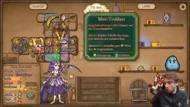 00:00:45Der Streamer startet den Tag mit Überlegungen zu seiner Spielstrategie in einem Game, wobei er zwischen Pyromancer- und Frost-Builds schwankt. Er äußert Interesse an einem Überraschungspaket, entscheidet sich aber zunächst für einen Frost-Build. Der Streamer erklärt, dass er den Stream etwas später gestartet hat, da er sein Kind in den Kindergarten bringen musste. Er spricht über verschiedene Gegenstände im Spiel, darunter Waffen und Schilde, und deren Effekte. Er erwähnt, dass er sich auf den Schild und die Banane als wichtige Gegenstände verlässt, die ihm im Spiel helfen. Er diskutiert die Vor- und Nachteile verschiedener Strategien, wie z.B. einen Stein-Build mit dem Golem, und überlegt, ob er sich darauf einlassen soll. Er spricht über die Bedeutung von Platz im Inventar und die Notwendigkeit, strategische Entscheidungen zu treffen, welche Gegenstände er behalten und welche er verkaufen soll. Erwägt giftige Builds, entscheidet sich aber vorerst für Frost. Experimentiert mit verschiedenen Gegenständen, darunter eine Fackel, und deren Synergien.