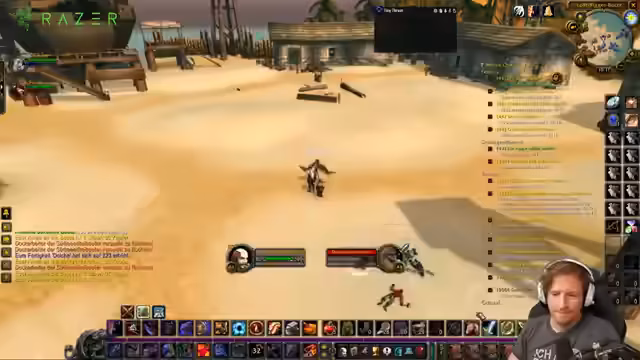 00:20:56Das Gameplay konzentriert sich auf das Leveln als Tank. Der Streamer erklärt, wie die Rüstung ihn zwischen den Kämpfen heilt und nutzt Fähigkeiten wie den Kniesschaden, um den Waffenskill effizient zu trainieren. Eine interaktion mit dem Chat beleuchtet das Konzept von Pay-to-Progress gegenüber Pay-to-Win in Classic WoW. Der Streamer betont die Schwierigkeit, das Spiel neu zu lernen, und die Herausforderung, mit Halbwissen in der Community umzugehen. Er zeigt zudem ein Makro, das automatisch Haltungen und Fähigkeiten wechselt, um den Kampfablauf zu optimieren.