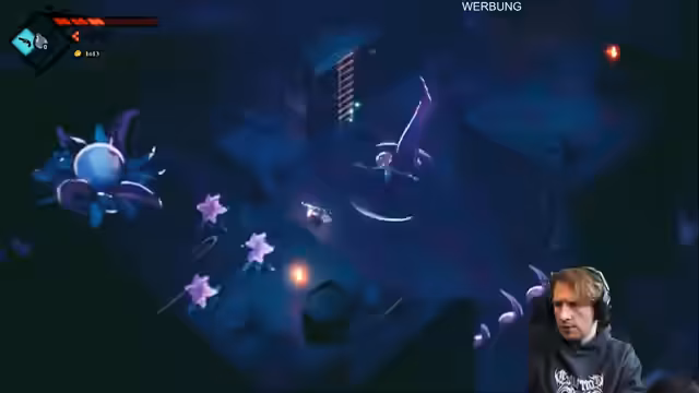 01:56:57Der Streamer beginnt ein neues, als "Metroid-artig" beschriebenes Spiel. Er ist zunächst verwirrt über die Steuerung und die unkonventionellen Interaktionen wie die "Greifetaste". Eine zentrale Mechanik ist das Sammeln von Blutsteinen, die LP heilen und Schaden erhöhen. Er testet die Kampfmechaniken, findet die Heavy Attack zu langsam und spricht über eine fehlende Schadensanzeige, was das Spiel anspruchsvoller macht, aber auch mehr Commitment erfordert.